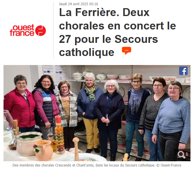 La Ferrière. Deux chorales en concert le 27 avril 2025 pour le Secours catholique